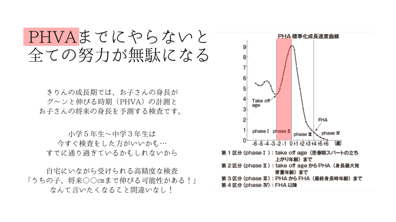 「PHVA」とは、子どもの成長スピードとタイミングを知るためのグラフ。何歳から何歳までが身長がぐっと伸びて、ピークが何歳何ヶ月か?まで分かるのがPHVAです!